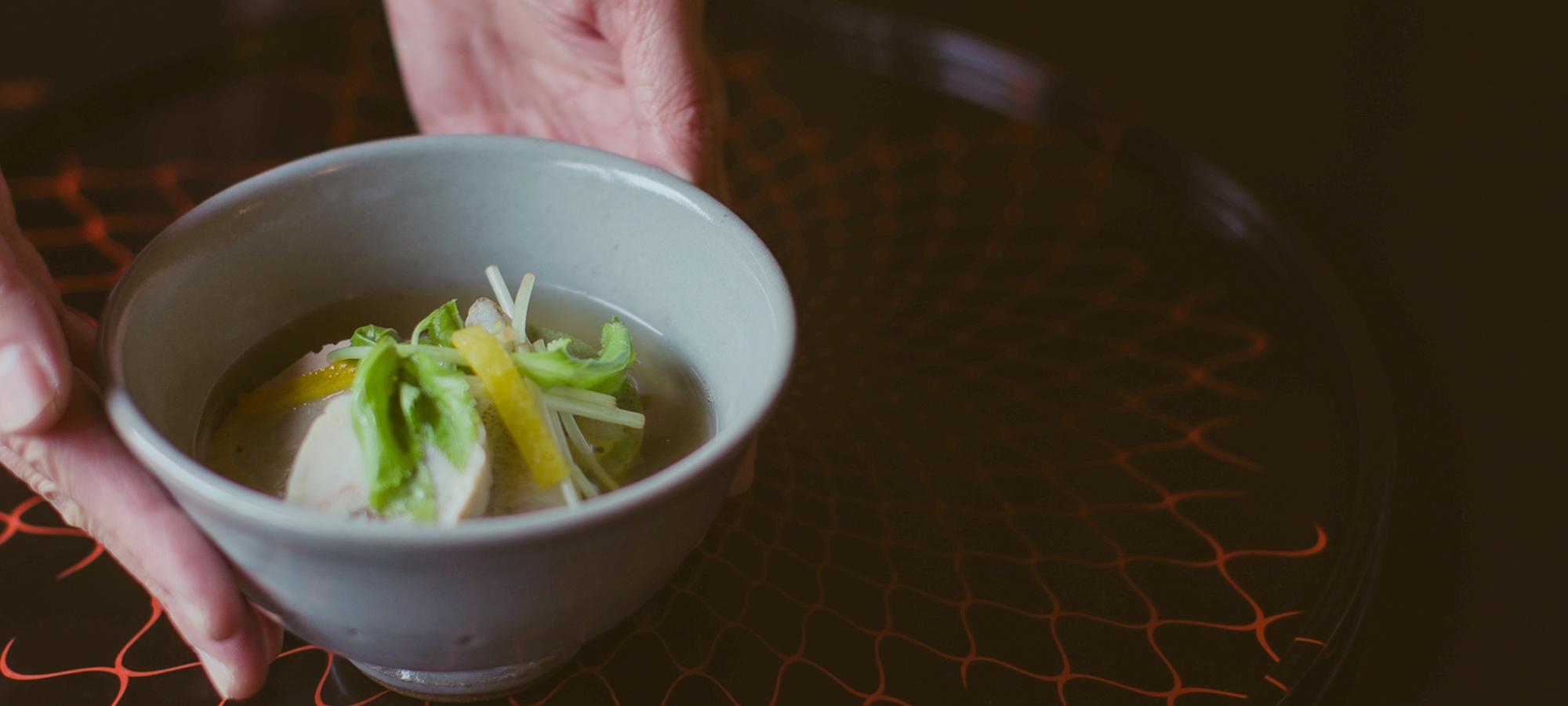自然の最良の恵みと人の技が織り成す料理を一幅の美のような歓びの会席に昇華する。