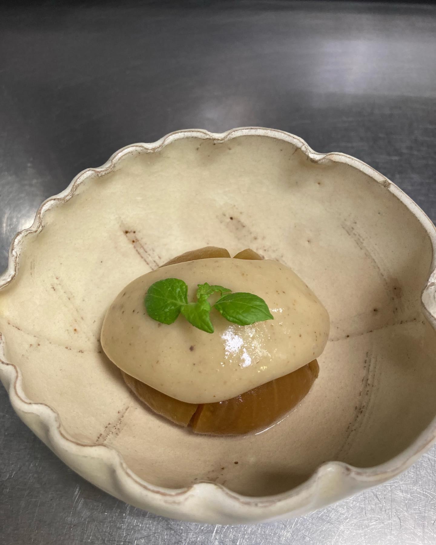 無花果の甲州煮に胡桃餡をかけた冷し鉢です。