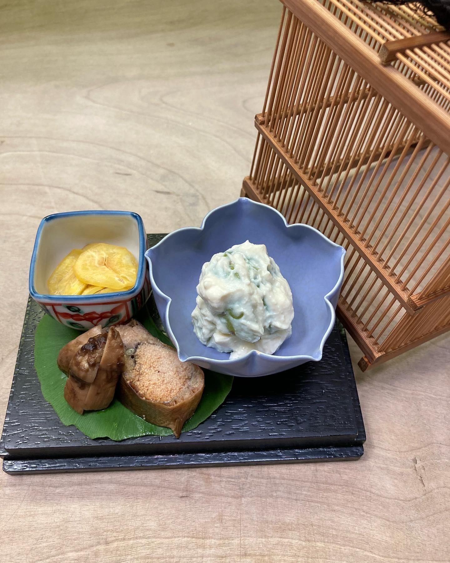 内容も松茸の辛煮、栗煎餅、子持ち鮎の煮浸し、シャインマスカットの白和えと秋満載です。